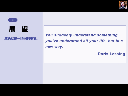 向老师认为审辩思维可以改变课堂教学目标的设计,也可以改变备课资源和拓展材料的选择。她强调,教师心中不仅要有教学目标,还要拥有强化学生课堂学习目标的意识,课堂教学不仅要传授知识、培养技能,更要关注学生学习的过程,即要关注过程性目标。