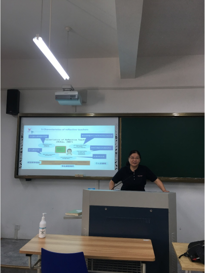 为指导师范生的论文写作,汪老师首先介绍了反思教学的概念、方法以及反思对于教师发展的重要意义,并从案例出发,演示了如何应用课堂观察的方法,进行课堂管理分析的实例。