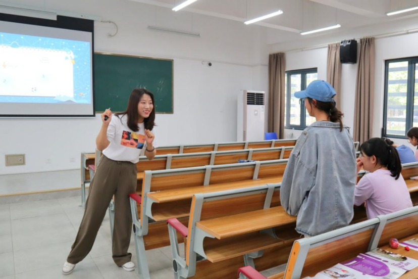 15届翻译2班的刘君妃,已成为一名人民教师的她,在讲台上落落大方,用互动打破沉寂,用笑容感染在座的各位。刘君妃真情实感地分享个人在瑞思的工作经验以及工作至今所参加过的各项活动,收获到的来自各方的温暖。对于她来说,爱与责任感是她在瑞思教育收获的最好的礼物,她闪闪发亮的眼睛,让人感受到了那一份悸动。