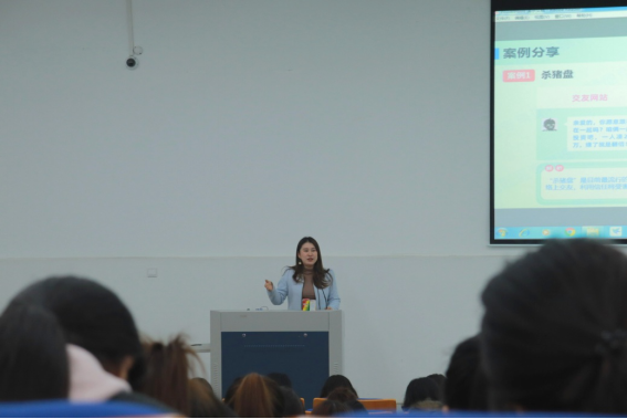 特邀蚂蚁金服工作人员吴老师作为主讲人,她结合大数据向同学们介绍了数十种常见的网络诈骗形式以及应对措施,讲座干货满满,英文学院近百名师生参与。