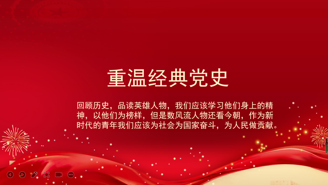 为引导广大党员坚定理想信念、勇于担当作为,传承红色精神,保持党员先进性,实事求是,用实际行动践行党员的初心和使命。英文学院翻译系学生党支部开展“重温历史,传承红色精神”主题党日活动。此次党日活动,主要是由各党员结合自身实际,分享家乡红色故事。