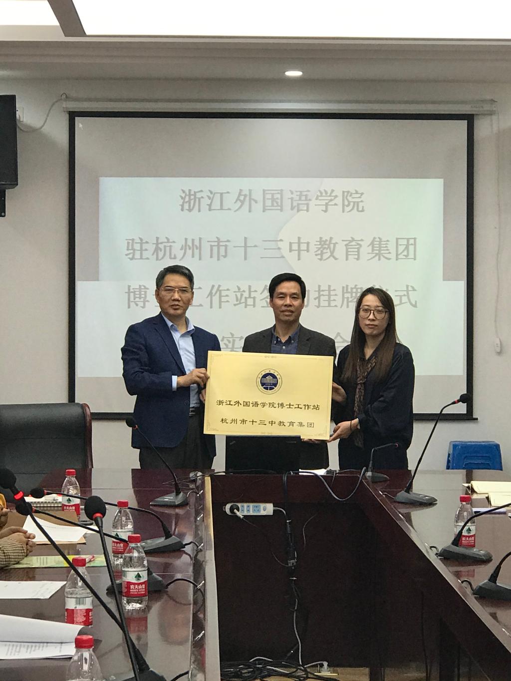 驻十三中教育集团博士工作站签约挂牌仪式暨实习座谈会在杭十三中教育集团总校举行,十三中教育集团副校长马锦绣、国产av