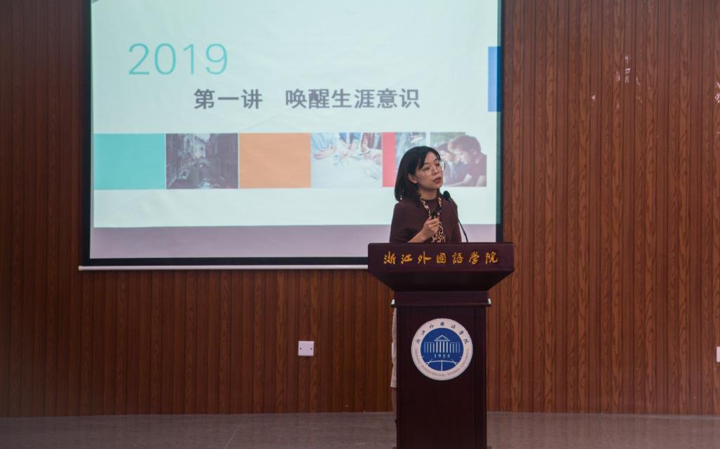 为了唤醒学生的职业生涯规划意识,帮助大一新生合理地思考和规划个人的职业生涯,及早确立自己的人生目标,激发其主动学习的动力,让学生了解自己的兴趣和能力,9月25日中午,英文学院19级新生职业生涯规划讲座在博文堂举行,讲座由陶诚老师主讲。