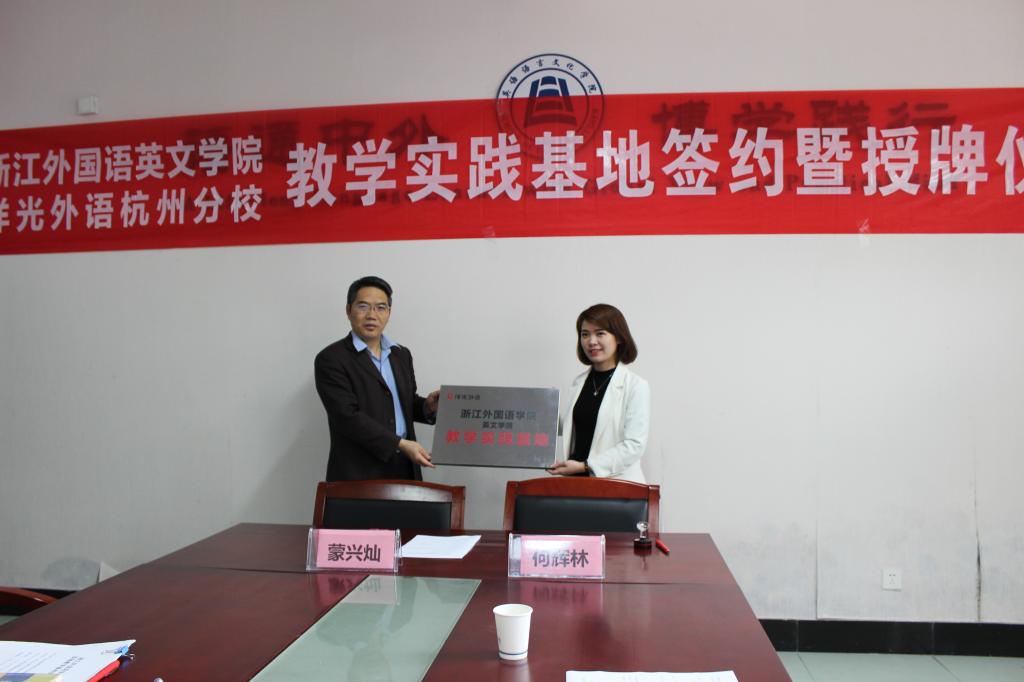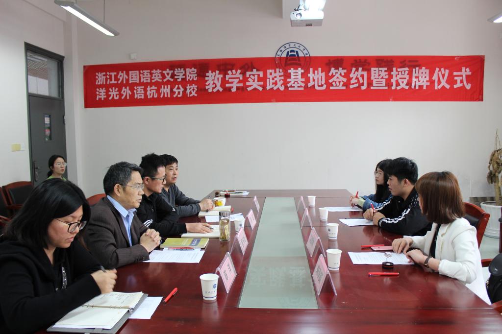 近日,英文学院与洋光在线教育科技有限责任公司杭州分公司举行教学实践基地签约仪式,双方单位负责人参加了签约仪式。