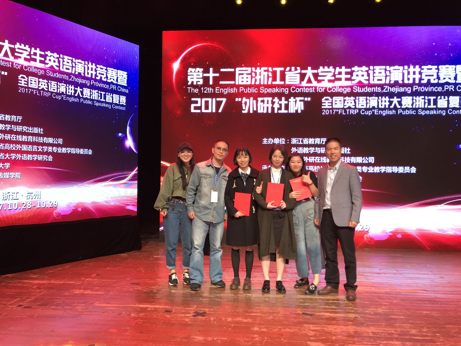 英文学子凭借出色的演讲作品和成熟的表演台风,从158名选手中脱颖而出,为浙外荣誉之殿添砖加瓦。其中,包静静获得省赛一等奖,夺得季军名号,孙晓词和潘姣姣位列大赛第14名和第17名,获省赛二等奖。