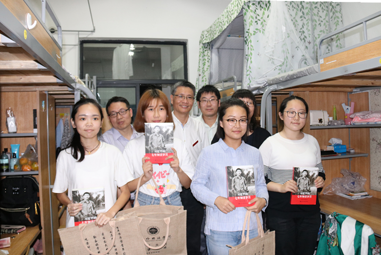 自今年3月份开始开展的“青年学子学青年习近平”主题教育活动,并向走访寝室的每一位新生发放了他们大学生涯的第一本教材《习近平的七年知青岁月》。宣书记用平实感人的语言跟同学们分享了这本书的主要内容和教育价值,要求新生们要通过本书的阅读认真学习青年总书记身上的优秀品质,汲取人生成长的精神力量,度过有意义的大学生涯。