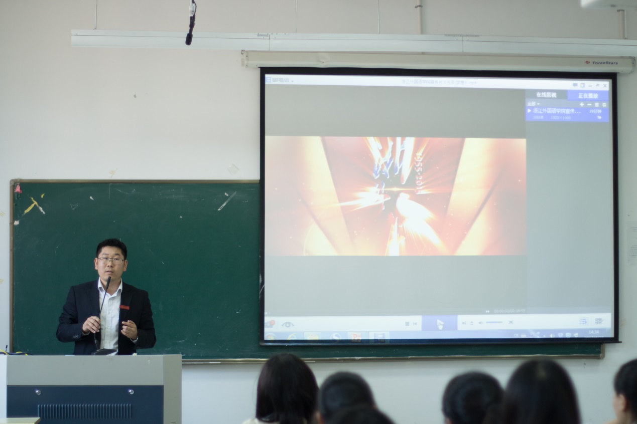 党总支副书记刘涛于4月27日下午在品院A508与全体党员、积极分子、学生干部分享了《我与我的浙外》的心路历程,以此激发学生的迎评热情和爱校情怀。