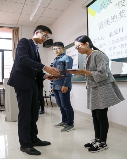 校友引领成长计划之“校友论坛”暨澳地奖学金授予仪式在艺术楼A508拉开了帷幕。
