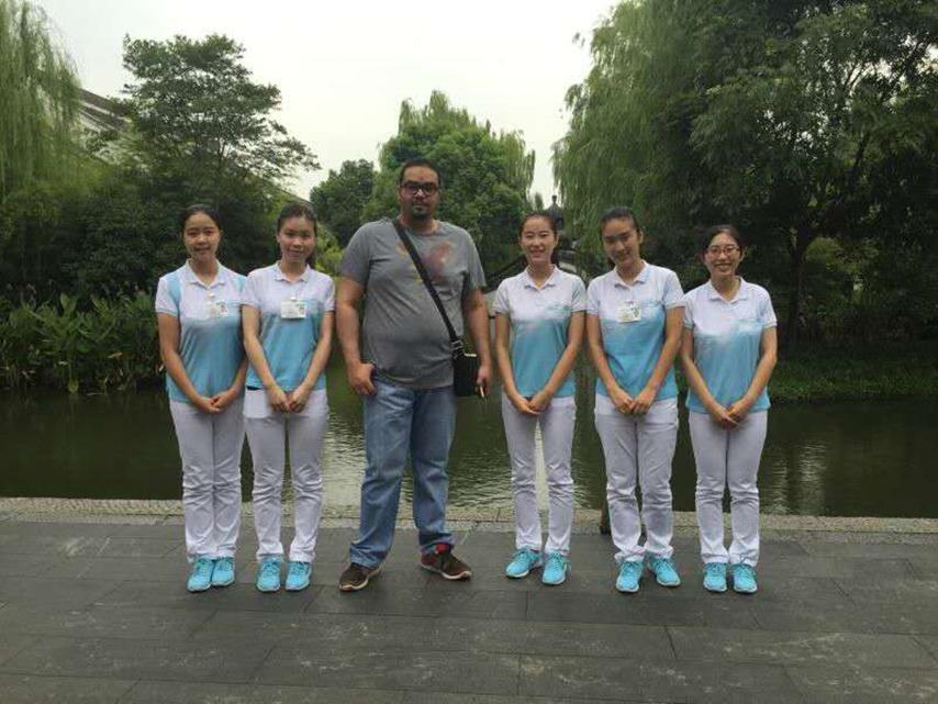 我所在的酒店负责接待阿拉伯国家的外宾,考虑到阿拉伯国家的宗教信仰和生活习惯,我在志愿服务的前期阅读了相关资料,详细了解了他们的风俗、禁忌。由于时差问题,9月2日凌晨,大批的阿拉伯外宾抵达酒店入住,知晓这个消息后,我们志愿者一大早立即赶往酒店,同酒店的工作人员一起投入到了紧张的工作中。由于酒店的特殊构造,客房分布比较零散,我负责将外宾分别带到他们对应的房间,并告知外宾酒店的早餐用餐、无线上网等具体情况。在带领外宾去往房间时,我发现在志愿者培训中教授的引导礼仪都派上了用场,从引导,为外宾开门,到提醒外宾注意台阶等各个细节问题上,我都做到了行为得当、言语礼貌。同时,一路上与外宾的交流也十分愉快。有好几位外宾赞叹了西溪湿地公园的美丽风景和酒店独特的房屋构造,也有外宾询问了我们志愿者的情况,当他们得知我们大部分都是在校大学生时,对我们从事志愿活动这一行为给予了鼓励与认可。