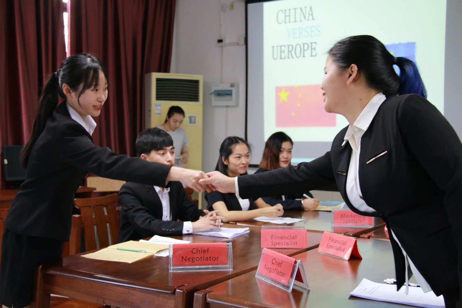 第一届国际商务谈判大赛决赛在实验楼举行。英文学院李生禄老师、高伟老师及相关学生代表担任此次大赛的评委。