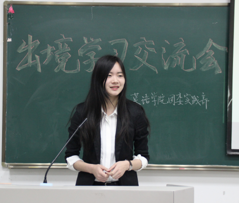 交流会邀请到了卢姚惠、朱倩倩和胡苗苗三位同学为大家分享了她们在国外学习生活的心得。其中卢姚惠和胡苗苗两位同学以风趣幽默的方式分享了她们赴美带薪实习这段奇妙历程。同时,也从实际出发向大家讲解了出国应该注意的细节。朱倩倩同学就她在德国魏茵加藤教育大学做交换生的经历,与我们分享了她在国外的校园生活以及有关于出国这段经历的得失与感悟。