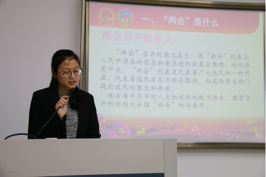 团委举办了2016年全国两会精神解读讲座,以在校大学生和普通公民视角解读了两会精神,分别简述了本次“两会”的重要热点,盘点了本届“两会”民生热词,分享了网友对“两会”的评价,联系了“两会”与我们的生活。