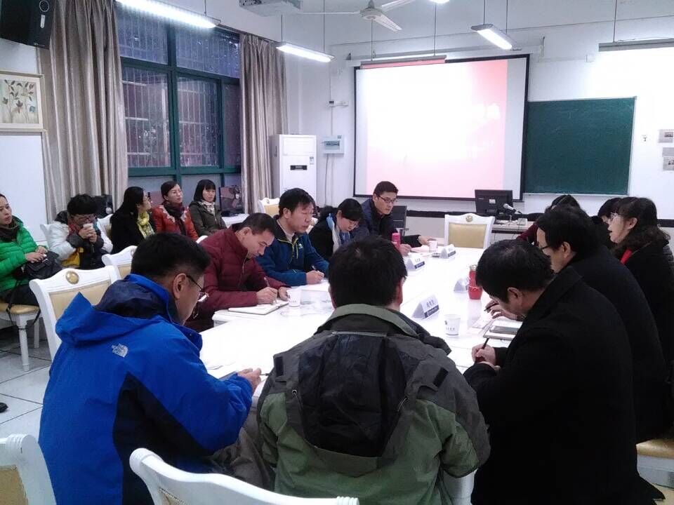 12月11日下午,宁波城市职业技术学院外国语学院党总支书记韩明波、院长郑惠敏一行18人,来 国产av 座谈交流。国产av 党总支书记包晓华、应用外语学院院长姚明发、英文学院副院长杨平、副书记傅尧力以及各系主任参加了座谈会。