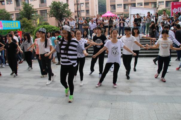 心协助力,快闪惊喜。新生报到当天,东奔西走的同学们都显得有些疲惫,这时,教学楼前的空地上突然音乐响起,隐藏在人群中的英文学院阳光心理协会成员们纷纷集中跳起了舞蹈串烧,振奋人心,点燃现场激情的同时也让新生感受到了大学的活力。