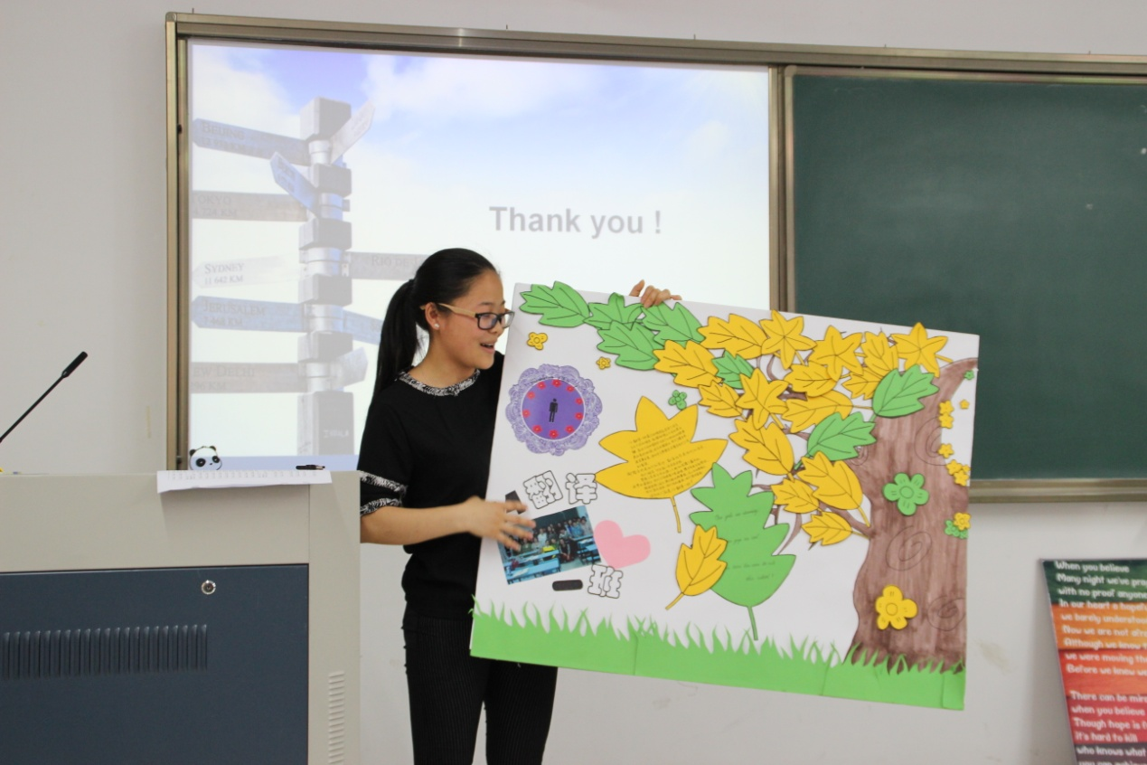 其中,12英语1班以“水”为文化,包容万物,团结友善;12英语3班热衷于志愿服务事业,全班踊跃参与各种志愿活动;14英语师范1班“以德立志、以言践行”,以崇高的道德素质为班级文化;14英语师范2班以"Aim higher, start sooner, carry on longer"为班级口号,以“团结互助”为班级文化核心,力求建设一个充满凝聚力、活力和激情的班集体;13英语翻译1班以“Translatemiracle;Translate soul! ”为口号,以字母T作为自己的班徽,代表了翻译专业的专业特色;13商务英语实验班以“博观约取,厚积薄发”为班级精神,鼓励每个同学只有勤奋刻苦地学习,才能有足够的能力去创新创业,不断追求自己的梦想。