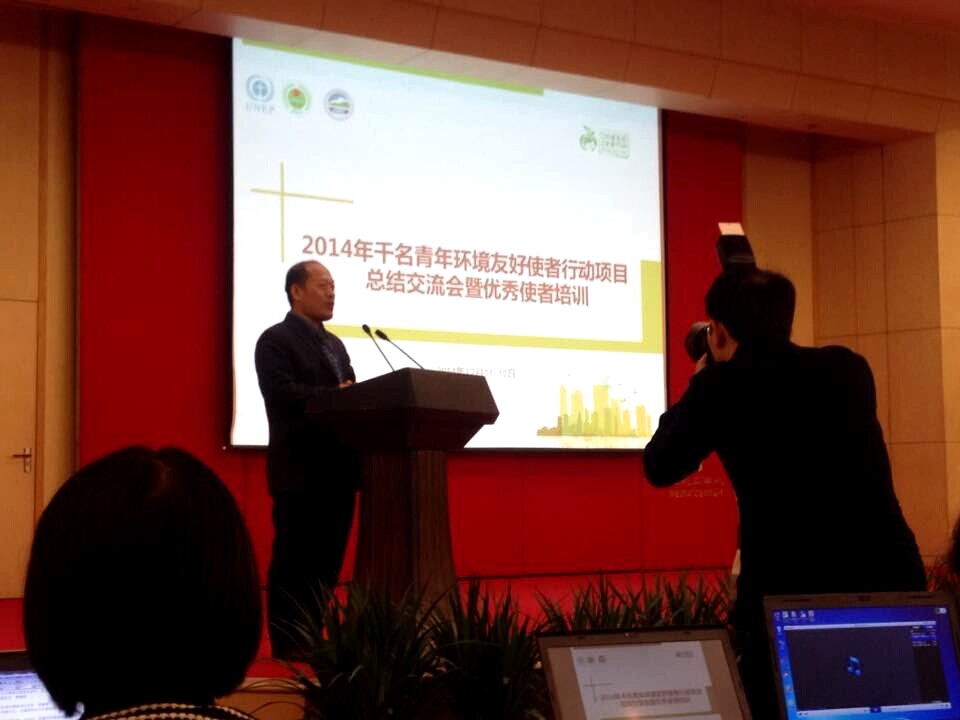 张英同学参与了此次会议,并与来自全国29个省市的优秀青年使者进行项目分享和交流。环境保护部宣传教育中心主任贾峰、共青团中央青年志愿者工作部党组书记侯宝森、全国政协人资环委办公室副主任逄春华、教育部思想政治工作司副巡视员俞亚东以及科技部、全国妇联、联合国环境规划署驻华代表处等单位代表出席会议开幕式,贾峰主任等领导致辞,环境保护部宣传教育中心副主任何家振主持开幕式。