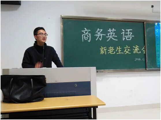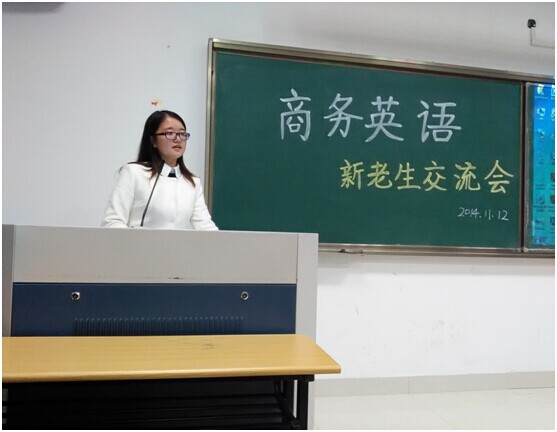 近日,商务英语专业举行新老生交流会。11级商务英语专业罗烨和叶佳丽分享了他们在商务英语学习之路上的经验和心得,英文学院2014级商务英语专业学生聆听了他们的精彩报告。担任主讲的罗烨学长曾多次获得校一等奖学金,荣获睿达奖学金,取得过浙江省英语演讲比赛二等奖的荣誉;叶佳丽学姐也多次获得校奖学金。一个多小时的交流会,我们14级商务英语新生收获颇丰。