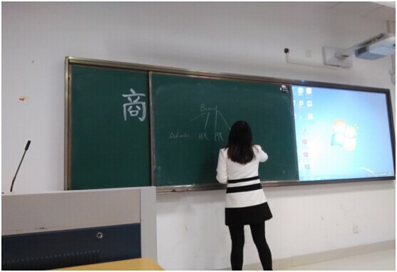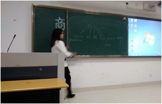 叶佳丽学姐和大家分享自己的实习经历,分析商务英语专业学生未来的不同就业方向。其中学姐提到去外企工作的相关事情。图为学姐为我们分析企业不同部门的不同职责。