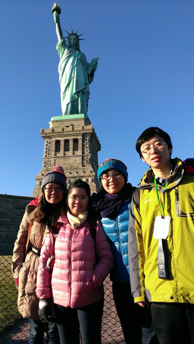 (感恩节与北京外交学院以及台湾的同学们在自由女神像的合照。)