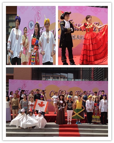 5月23日下午,英语文化节系列活动之异域风情街展在小和山校区举行。来自英文学院的同学们展出了尼泊尔、南非、牙买加、新西兰、巴哈马、爱尔兰、澳大利亚、菲律宾、加拿大共九个国家的民俗风情。在充满异域风情的音乐中,“各国代表”身着盛装,依次展示了具有该国特色和民族文化的服饰,吸引了广大师生前往观看。T台外的文化展板、有奖知识竞答、语言学习、美食分享等活动,则进一步揭开了九国文化的神秘面纱,展示了各国的人文历史及风土人情,营造了文化碰撞的火热气氛。