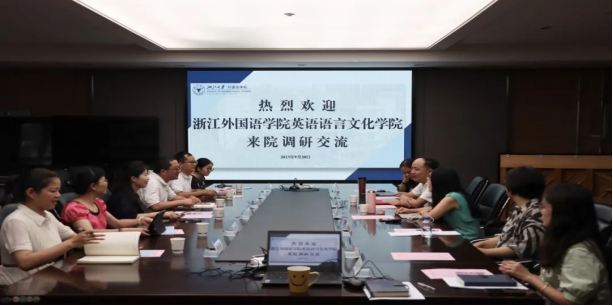 9月20日,学院领导班子全体成员、专任教师代表等一行7人赴浙江大学外国语学院调研。浙大外国语学院党委书记、副院长罗泳江,副院长张慧玉,英语系副主任,党建、科研、国合等工作相关负责人参加调研。