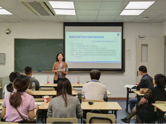 外语教育研究中心成员首次以团队展示的形式参会,围绕“新文科背景下的外语教师素养发展”议题,报告了聚焦语言教师数字素养、培训需求、评价素养、跨学科研究能力和拓展学习的最新研究成果,并得到与会教师的好评。应用外语学院刘懿还主持了聚焦“身份认同与外语教师发展”的研究生论坛。