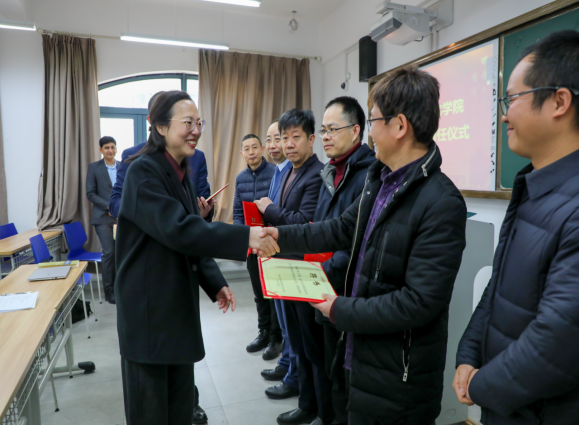 院长邢富坤向张环宙详细介绍了学院的学科建设规划和各学科负责人的工作情况。张环宙与学科负责人一一握手致意,亲切交谈,并为他们颁发了聘书,对他们的工作表示高度认可和感谢。