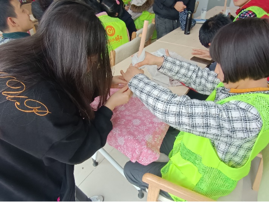 培训过后,志愿者们与残疾人们一起学习制作了“捶捶乐”。志愿者们协助分发了材料包,并在老师的讲解下,辅助残疾人们一同创造了属于他们的特色艺术品,度过了愉快的陪伴时光。