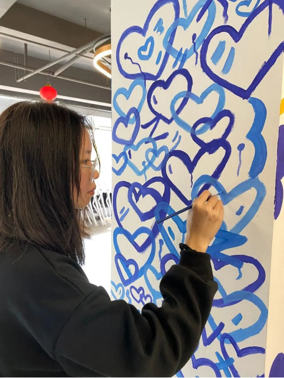 到达志愿服务地点,我的第一感觉是童心学院果然形如其名,是一个充满童趣和欢乐的地方。我被分派了墙绘的任务——在小朋友们的活动教室的墙柱上绘画。这是我第一次在墙面上作画,是一次难忘的体验,想到自己绘制的墙面能够给小朋友们传递积极、阳光和欢欣的信号,内心就由衷的感到开心与激动。