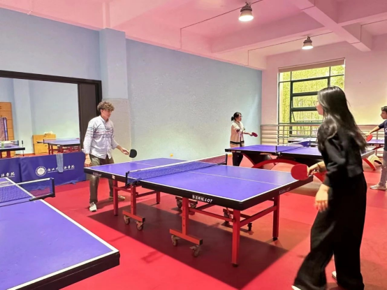 双方在不断的练习中互相激励、分享技巧,火热的氛围点燃了每一个人对乒乓球这一运动的热情,也为留学生和英文学院的同学们提供了一个深入交流的机会。在活动结束后,仍有不少留学生和英文学院的同学围在一起,分享着打乒乓球的感受。
