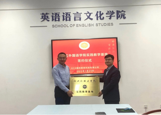 4月25日,GCA国际教育集团执行总裁、项目主管等一行人来访英文学院,举行实践教学基地、国际化实践基地签约授牌仪式。院长邢富坤、副院长陶伟、党总支副书记张豫晋、院长助理周静、团委书记顾蒙参加。