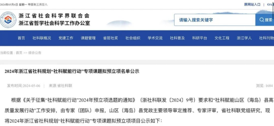 据悉,“社科赋能行动”由浙江省社会科学界联合会、浙江省哲学社会科学工作办公室联合主办,为深入贯彻省委省政府部署,落实《关于深入推进社科赋能山区(海岛)县高质量发展行动的意见》、社科赋能行动年度推进会等工作要求,推动2024年的“社科赋能山区(海岛)县高质量发展行动”走深走实。