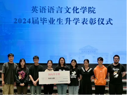 欧万彬主持,并总结了2024届毕业生升学情况,分析2025届学生考研升学形势。他表示,在研究生考试人数屡创新高、考研报录比持续走高的形势下,英文学院学生升学成功率能够稳步提升,2024届毕业生国内考研上岸率和出国(境)深造人数、进入双一流大学和QS排名前100大学的学生比例更是创历史新高,这体现了学院在教学质量和学生培养方面的卓越成就,这也为有意向升学的同学们传达了积极的信号,鼓励大家不断学习、不断进步。