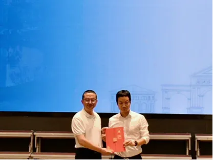 随后,英文学院院长邢富坤为浙江江能建设有限公司董事、常务副总经理邵中祥颁发“行业领英计划”行业导师聘书。