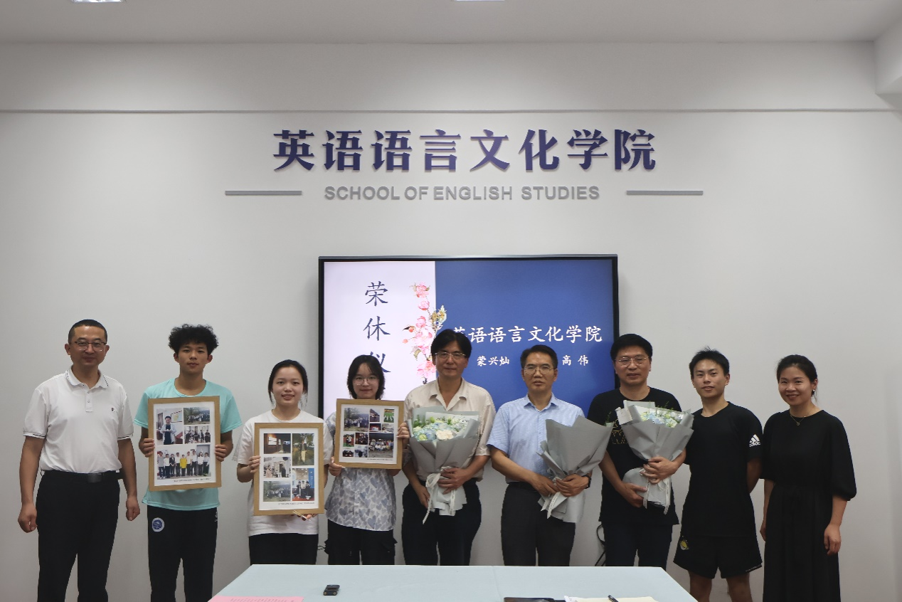 薪火相传、初心永恒。6月28日,英文学院在会议室举行荣休仪式,为光荣退休的教师送上美好祝福。学院党政班子全体成员,三位荣休教师:蒙兴灿、杨平、高伟,学院教职工代表、学生代表共30余人参加了仪式。仪式由学院党委书记田俊杰主持。
