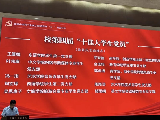 7月1日,英文学院师生在庆祝中国共产党成立103周年暨七一表彰大会荣获多项荣誉,日复一日的努力与坚持使得英文学院再次交出圆满答卷!