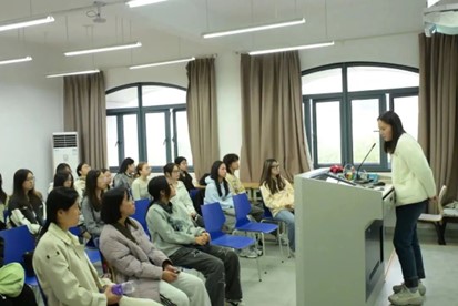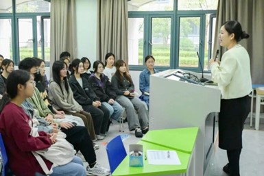 英文学院2013届英语(师范)专业校友、杭州长江实验小学英语教师、英语教研组组长谢薇薇为学弟学妹们带来了题为“Grow as an English Educator”的分享。她介绍了英语教育者成长与职业规划,向大家传授教学提升与职业规划心得。她强调,大学期间我们应积极参与课堂、规划四年学业,此外,她还指出了实习、学历、资格证对求职的关键作用。谢薇薇展望了英语教育者多元就业的前景,鼓励同学们在大学期间提升专业能力,明确职业方向。