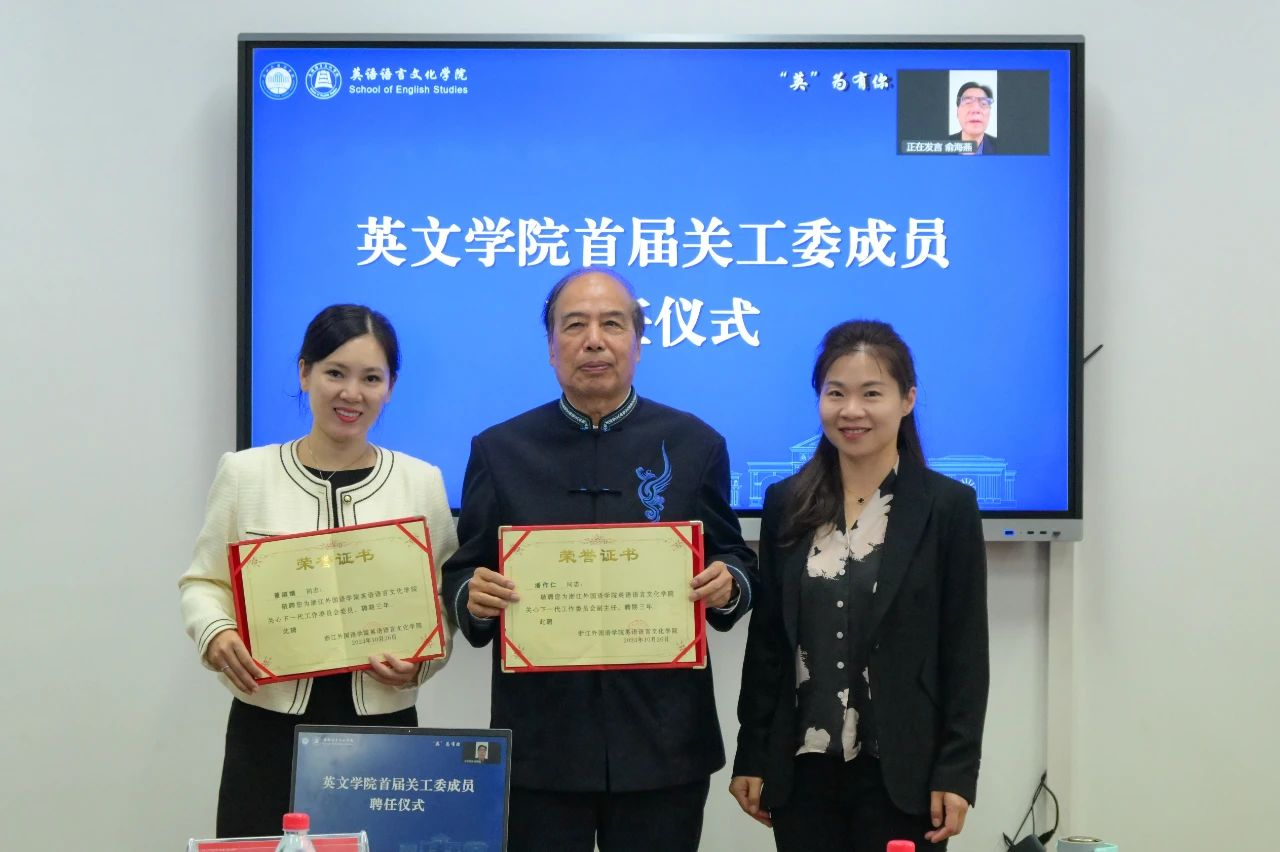 在各位师生校友的共同见证下,英文学院关心下一代工作委员会成立。田俊杰宣读了首届关工委成员名单,并为委员代表颁发聘书。