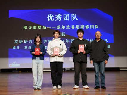 随后,举行英文学院2024年国际交流表彰仪式。柴改英、赵伐、张贵洪、郑淑贞分别为学院2024年国际交流优秀老师、优秀团队、优秀班级及优秀个人颁奖。