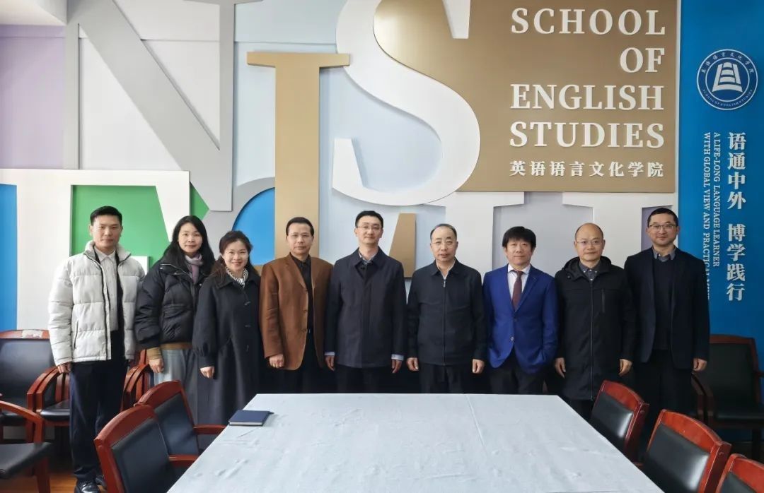近日,副校长、党委委员姚旻带领党委教师工作部、人事处处长何伟强、副处长胡小敏一行来到英文学院走访看望高层次人才。学院外语教育系学科专业负责人、全职特聘教授常俊跃,翻译传播系学科专业负责人、全职特聘教授黎昌抱,区域国别和商务英语系学科专业负责人、全职特聘教授王冲,学院党政班子领导成员参加了座谈。