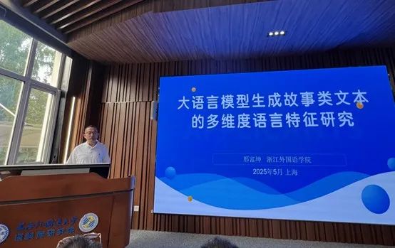 邢富坤在“大语言模型生成故事类文本的多维度语言特征研究”报告中提出了人工智能语言变体的概念,并以故事类文本为例对比了人类原创文本与大语言模型生成文本间的异同。该研究工作由邢富坤教授和英文学院2022级英语专业本科生龚恩溢同学合作完成。