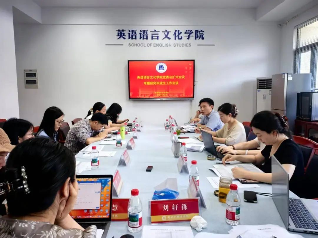 为进一步压紧压实毕业生就业工作责任,以更高站位、更大力度推动毕业生就业工作攻坚克难,6月6日下午,英文学院召开党委(扩大)会议专题研究2025届毕业生就业工作。学院党委班子成员、全体毕业班班主任、毕业生就业工作辅导员参加会议。学院党委书记田俊杰作工作部署并讲话,学院党委副书记、纪委书记欧万彬主持会议。