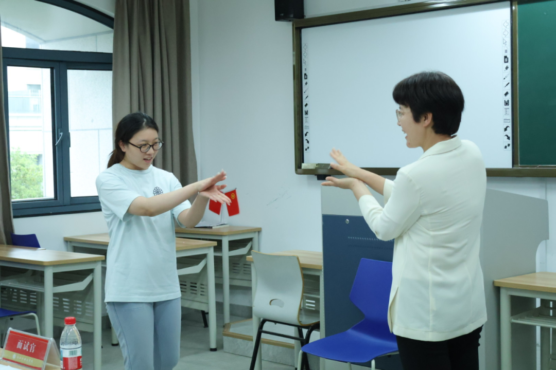 宣讲会结束后同步举行了现场招聘会,全院共48名学生参加面试。学生围绕儿歌进行表演,用生动演绎传递童趣与教学潜力,同时对教育理念相关的问题给出了富有思考性的回答。面试官们认真负责,细致观察同学们的表现,从语言表达、教学感染力到教育理念理解,全方位评估适配度。