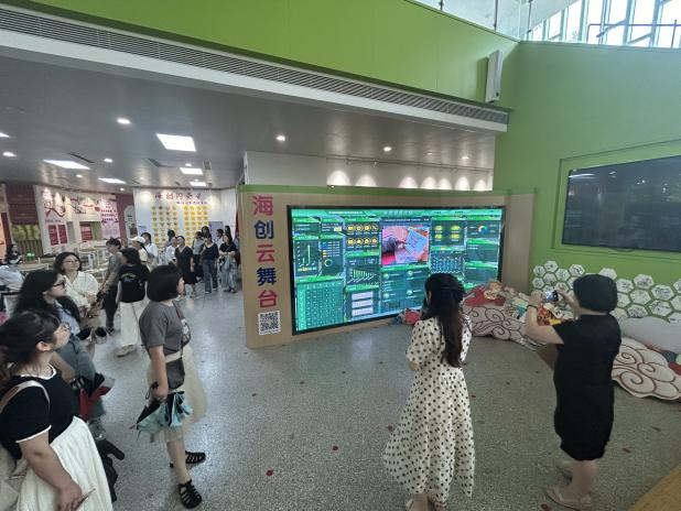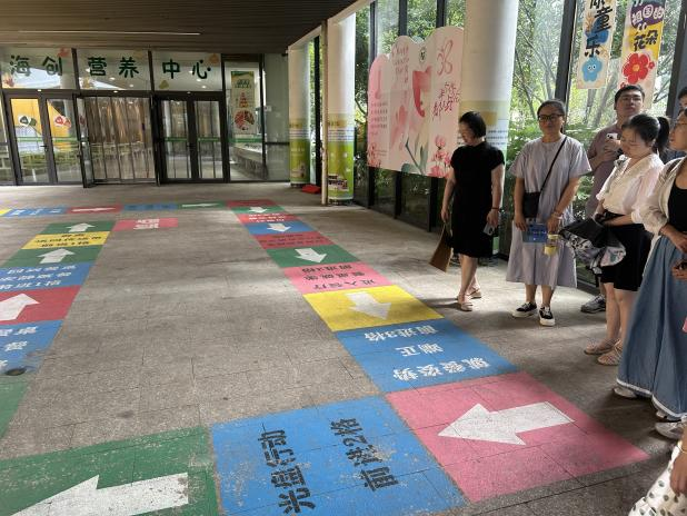 海创小学英语组教师带领大家参观了校园内丰富的场馆资源,包括“海创树屋”“海创良田”“海创码头”等特色场馆。这些场馆不仅是学生实践学习的场所,更融入了AI技术:生态园中,学生利用AI工具制作植物双语名片,解决植物辨识问题;大厅的“AI运动系统”则通过人脸识别为学生提供跳绳排名激励,激发运动兴趣。