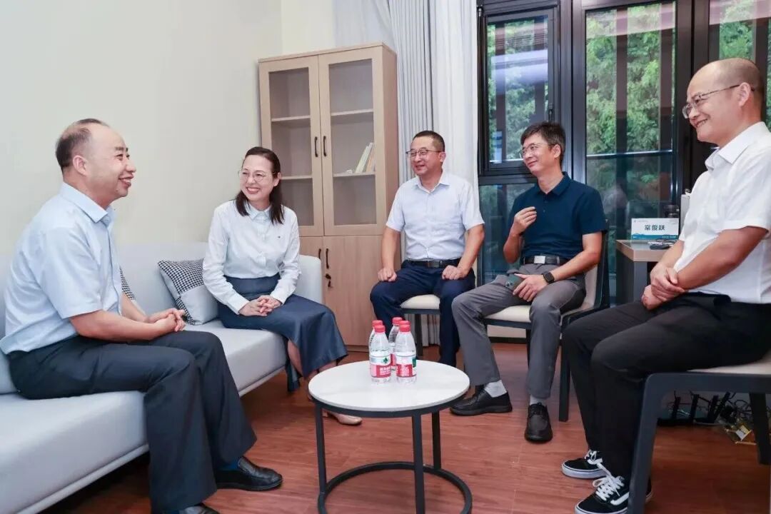 张环宙与校外语教育研究中心主任、外语教育学学科带头人常俊跃教授亲切交流,高度评价其在学科、专业、团队建设中的辛勤付出,祝贺外语教育研究团队在高层次项目和成果上取得的瞩目成绩,希望继续发挥标杆作用,以区域国别学为引领,以外国语言文学为基础,深入谋划外语人才的创新培养和青年教师的成长赋能。