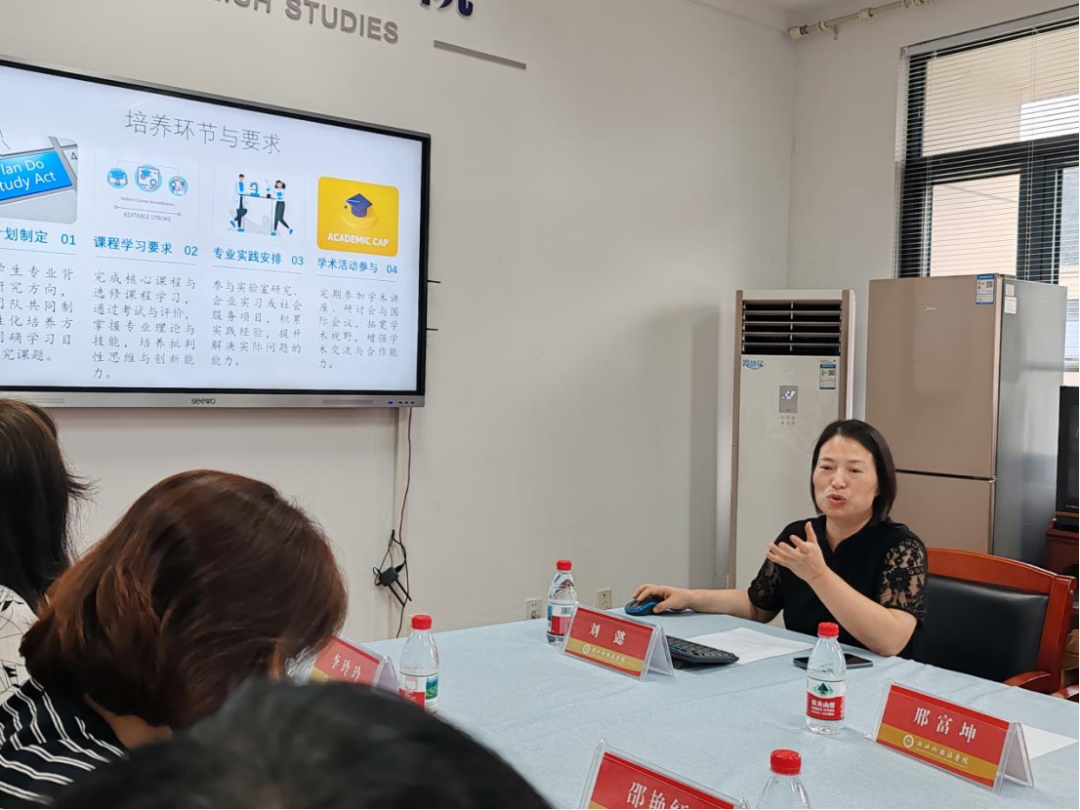 刘懿系统解读了教育硕士培养方案、学科教学(英语)方向特色和培养重点,明确“立足浙江、面向全国”的定位,培养具备扎实的学科教学理论功底与教研能力的毕业生。刘懿介绍了2025年硕士生导学互选工作方案,强调互选规则遵循公平、公正、公开的原则,充分尊重师生意愿。