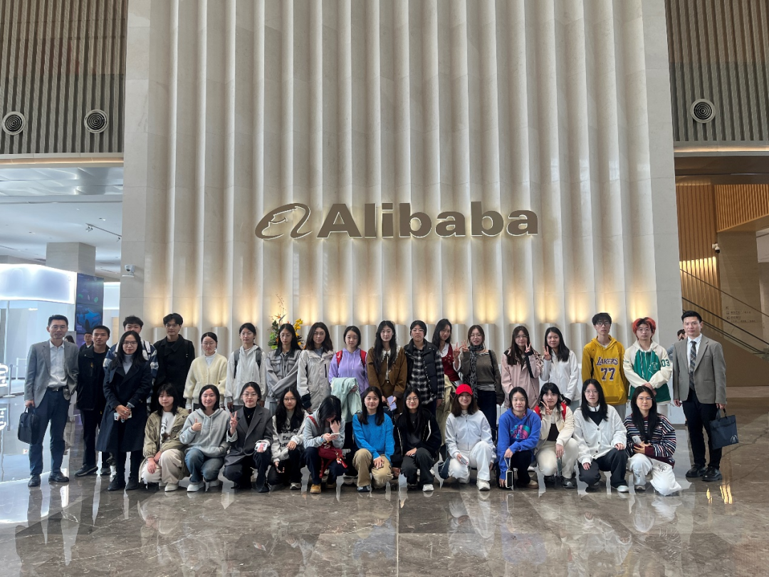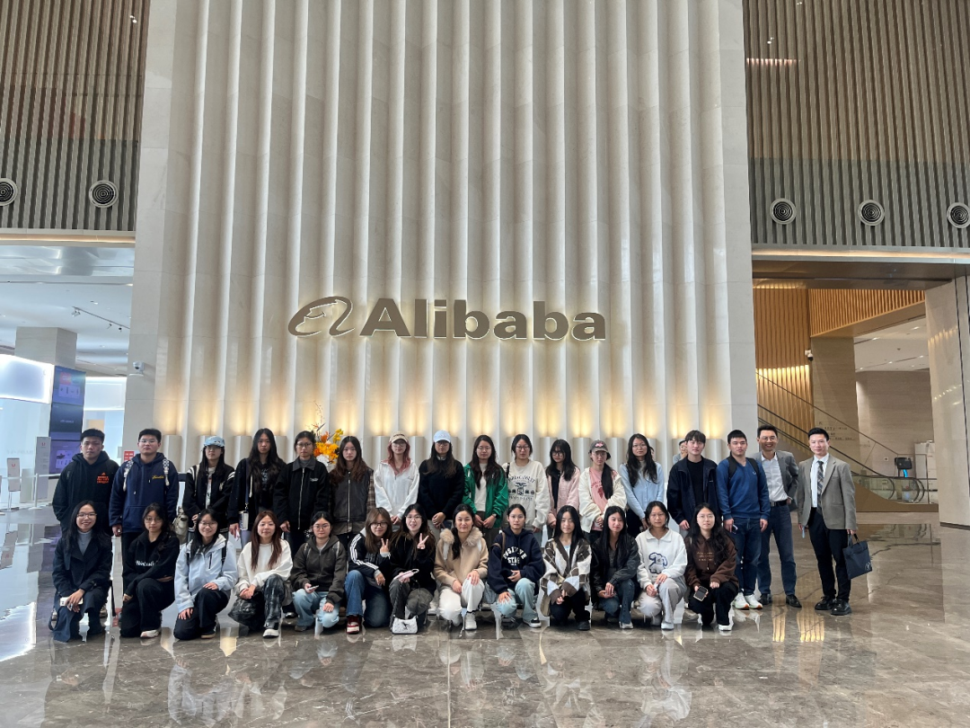 近日,英文学院2024级商务英语系学生在学院党委副书记、纪委书记欧万彬,区域国别与商务英语系教学主管郭安琪、教师何习尧的带领下,赴阿里巴巴西溪园区开展实践周课程学习活动。