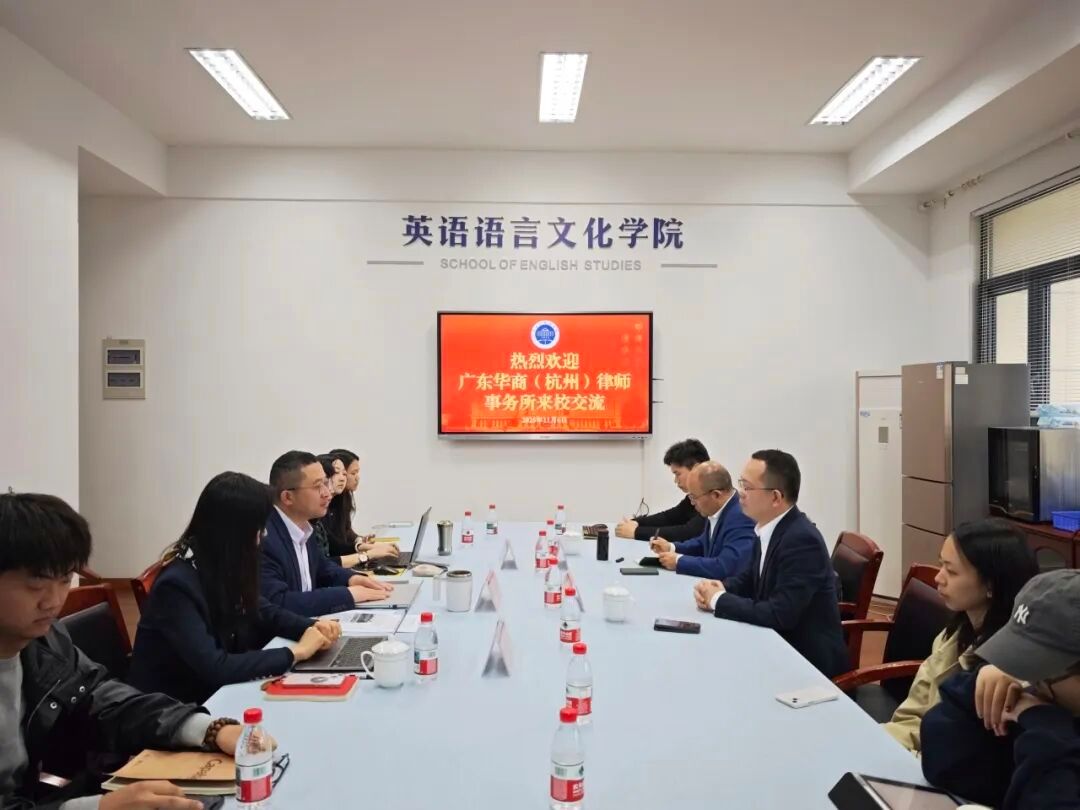 11月6日,华商(杭州)律师事务所受邀参加英文学院研究生实践座谈。事务所主任董锋律师,中国计量大学法学院副教授、事务所律师汪江连就共建翻译硕士实践基地、合作培养人才等事宜进行交流。英文学院副院长郑淑贞、学术副院长、华商(杭州)律师事务所翻译硕士研究生教育实践基地负责人赵歆及全体翻译硕士学生参与本次洽谈。英文学院院长邢富坤主持会议。