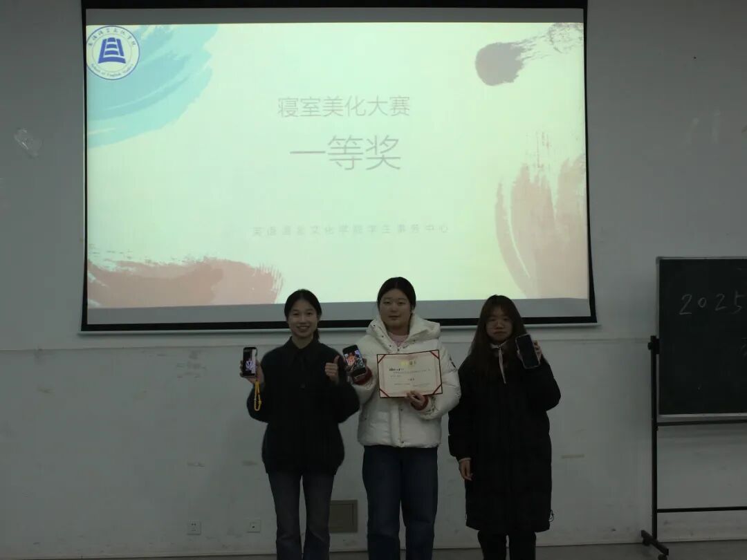 美好生活 尽显于“室” -英文学院寝室美化大赛成果展示- 四季轮转,时光如诗 我们为“家”打造的惊喜,也迎来了最终篇章 从初赛收下生活的巧思 到决赛集满文化的灵感 现在 请查收这份诚意满满的决赛风采“大片” 01.宿舍介绍 一等奖 雅致4-128 推开128的门,布置简约却不乏巧思 温馨舒适的居住感顷刻包裹着身心 玩偶与绿植吐露着温柔的日常心意 见证着我们朝夕相处的欢愉与岁岁年年 二等奖 雅仪5-316 雅仪5-110 寝室生活如同一部流动的温暖剧集 夜深灯暖时,细语在床帘间悄悄传递 白日明朗处,欢笑在阳光中轻轻跳跃 我们在这片小天地写下独属青春的诗句 也在相伴时光里读懂友谊柔软的意义 三等奖 雅仪5-205 雅仪1-603 雅致2-414 忙碌之时这里便切换成静音模式 有人戴着耳机默写单词,笔尖如细雨沙沙 有人对着镜子练习演讲,神情如正式登场 每个沉浸的时分都在为未来铺展道路 每阵轻轻的翻书声都是梦想静静发芽 优胜奖 雅致4-109 雅仪5-302 雅致4-121 雅致4-112 雅致4-124 雅正7-104 雅致4-111 02.寝室风采展示 恭喜以上寝室获奖 “寝”系时光,“宿”写年华 愿我们始终怀抱对生活的热忱 让独特的寝室文化继续生长 让这方小小天地 永远盛放友谊的芬芳,延续青春的温度