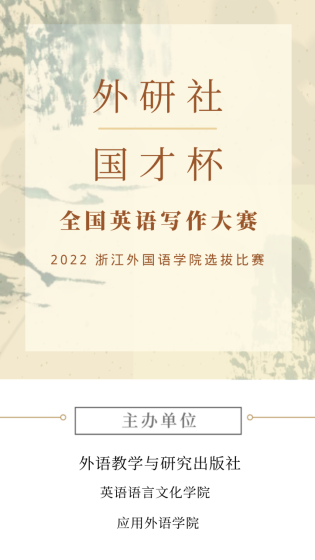 “外研社·国才杯”全国英语写作大赛是外研社主办的系列赛事之一,是大学生展现风采、实现自我的广阔舞台。“阅读使人充实,演说使人机敏,写作使人严谨。”培根充满智慧的话语是对“外研社·国才杯”系列赛事的最好诠释。大赛汇聚全国优秀学子,竞技英语表达与沟通艺术,为全国大学生提供展示外语能力、沟通能力和思辨能力的综合平台。
